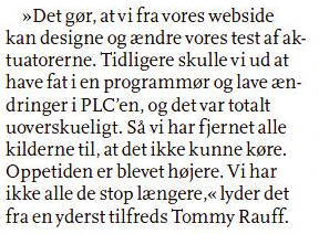 Ingeniøren bragte 31. august 2012 en artikel om Linaks anvendelse af PLCSQL Link
